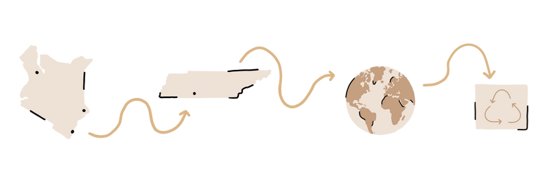Once shipments arrive safely at our Tennessee warehouse, products are then packaged in recycled polymailers or in a boxes sealed with kraft tape, making it easy to recycle for our customers.
