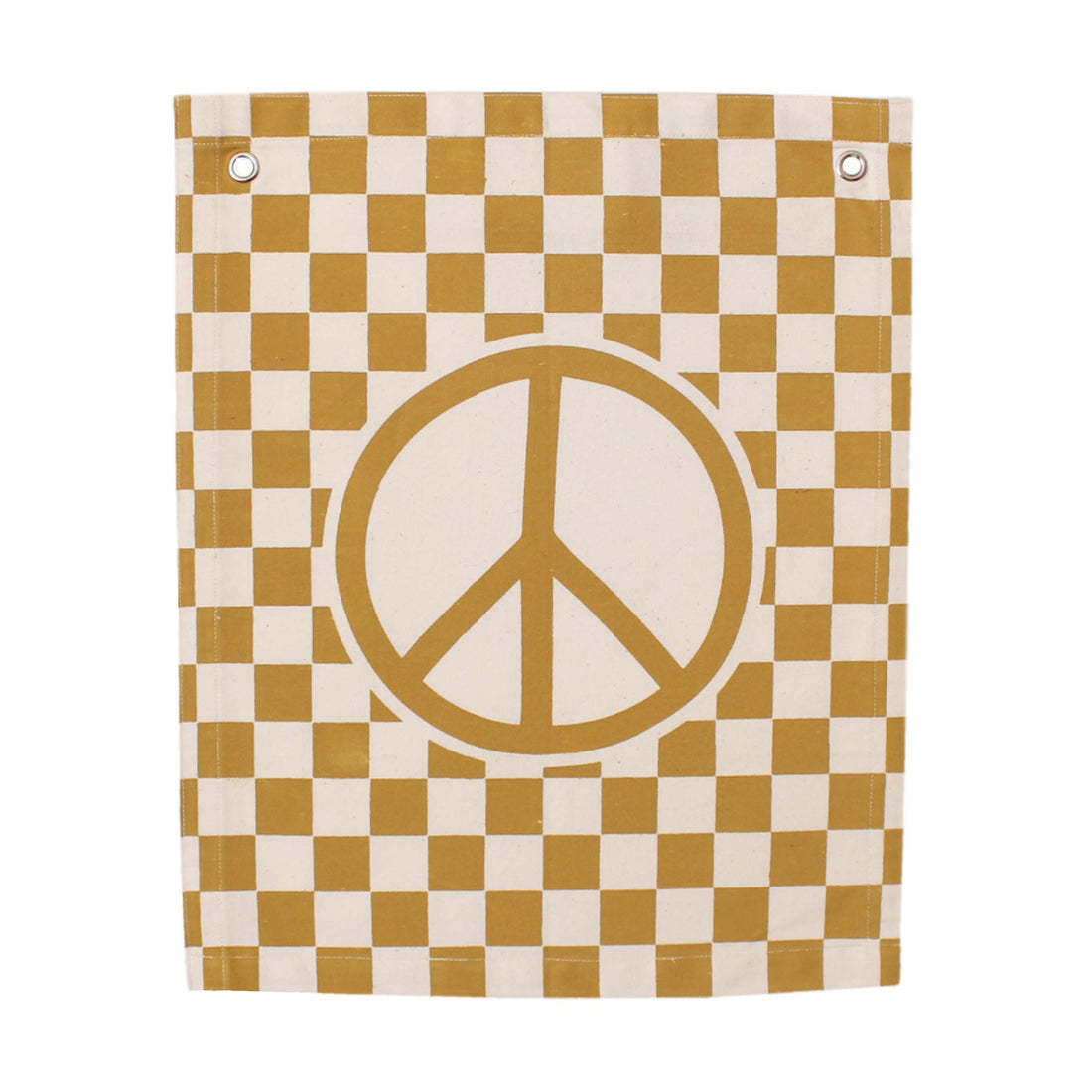 Checkered Peace Sign Canvas Banner | Handmade Wall Flag