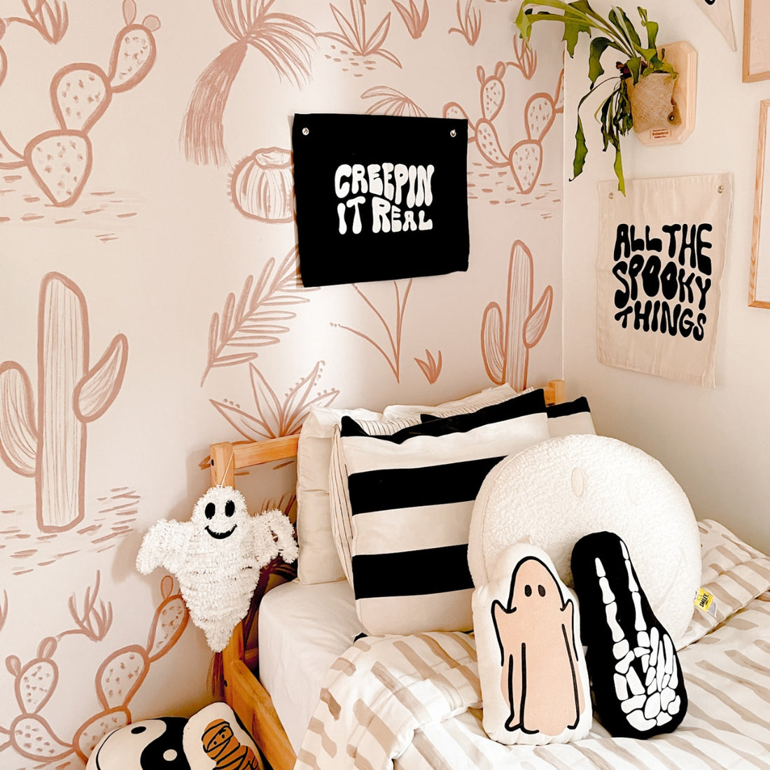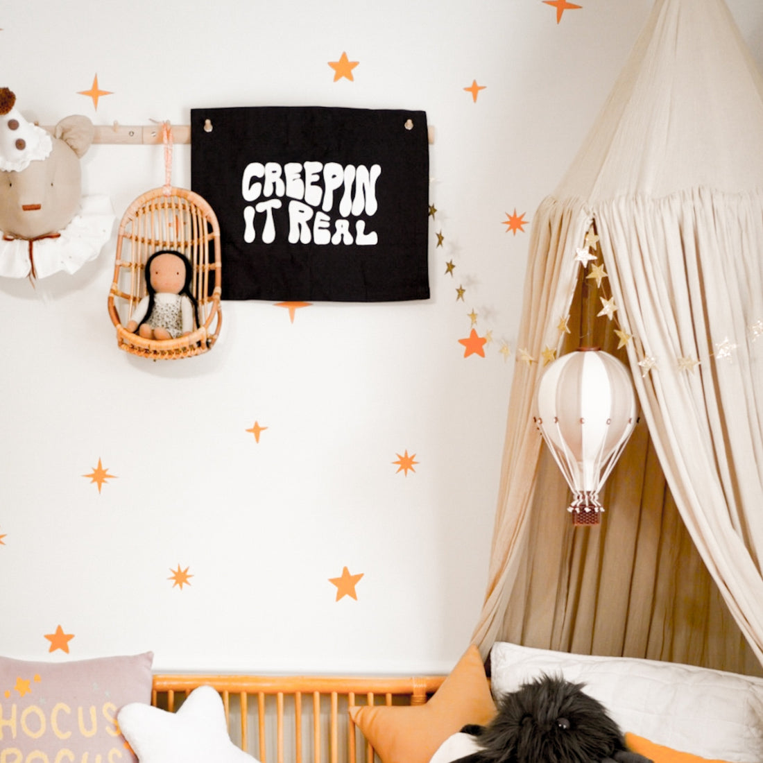 Bring a playful dose of spooky fun into your home this season with our “Creepin’ It Real” Canvas Banner. Perfect for Halloween parties, seasonal home décor, or a quirky wall accent, this banner adds just the right amount of festive fright without sacrificing style.