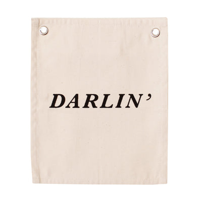 Add a touch of southern charm to your home with our “Darlin’” Canvas Banner. Featuring a bold black screen print on natural canvas, this handmade wall flag is part of our Howdy Line, inspired by the spirit of the American West.