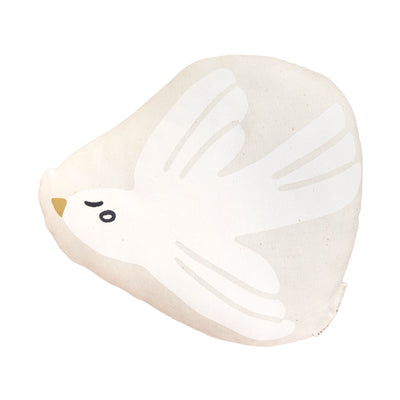 dove pillow sewn and screen printed by hand on natural canvas by local artisans in Mombasa, Kenya.
