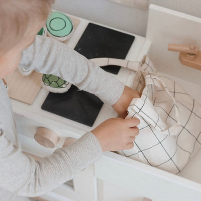 Perfect for imaginative play, our farmers market tote is a great size for little hands and includes 6 hand sewn fruits + veggies. Sewn and screen printed by hand on natural canvas by local artisans.