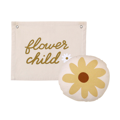 Welcome a world of wonder and warmth into your child's space with our Flower Child Bundle. This bundle features the Flower Child Banner and the Daisy Pillow, each crafted by the skilled hands of Kenyan artisans using natural canvas.