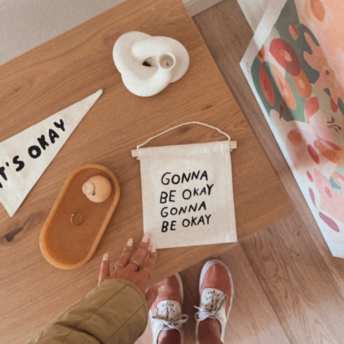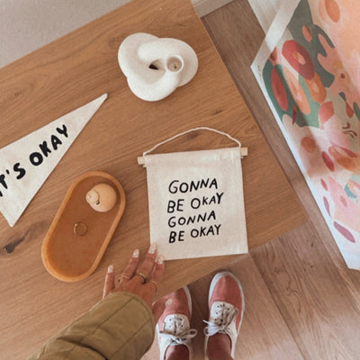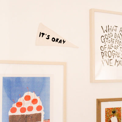 "it's okay" pennant made in collaboration with artist Kristen Peers