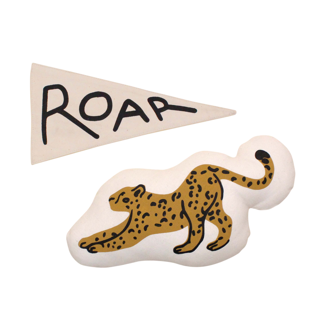 Welcome to the heart of the jungle with our Jungle Explorer Bundle, designed to inspire bravery and wonder in every child's heart. This enchanting collection features the daring Cheetah Pillow and the spirited Roar Pennant, perfect for creating a vibrant and empowering space for your little adventurer.