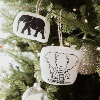 This elephant ornament set consists of 2 ornaments made by empowered artisans in Mombasa, Kenya in collaboration with Mara Elephant Project. 20% of proceeds from this ornament set will be donated to the Mara Elephant Project's conservation efforts.