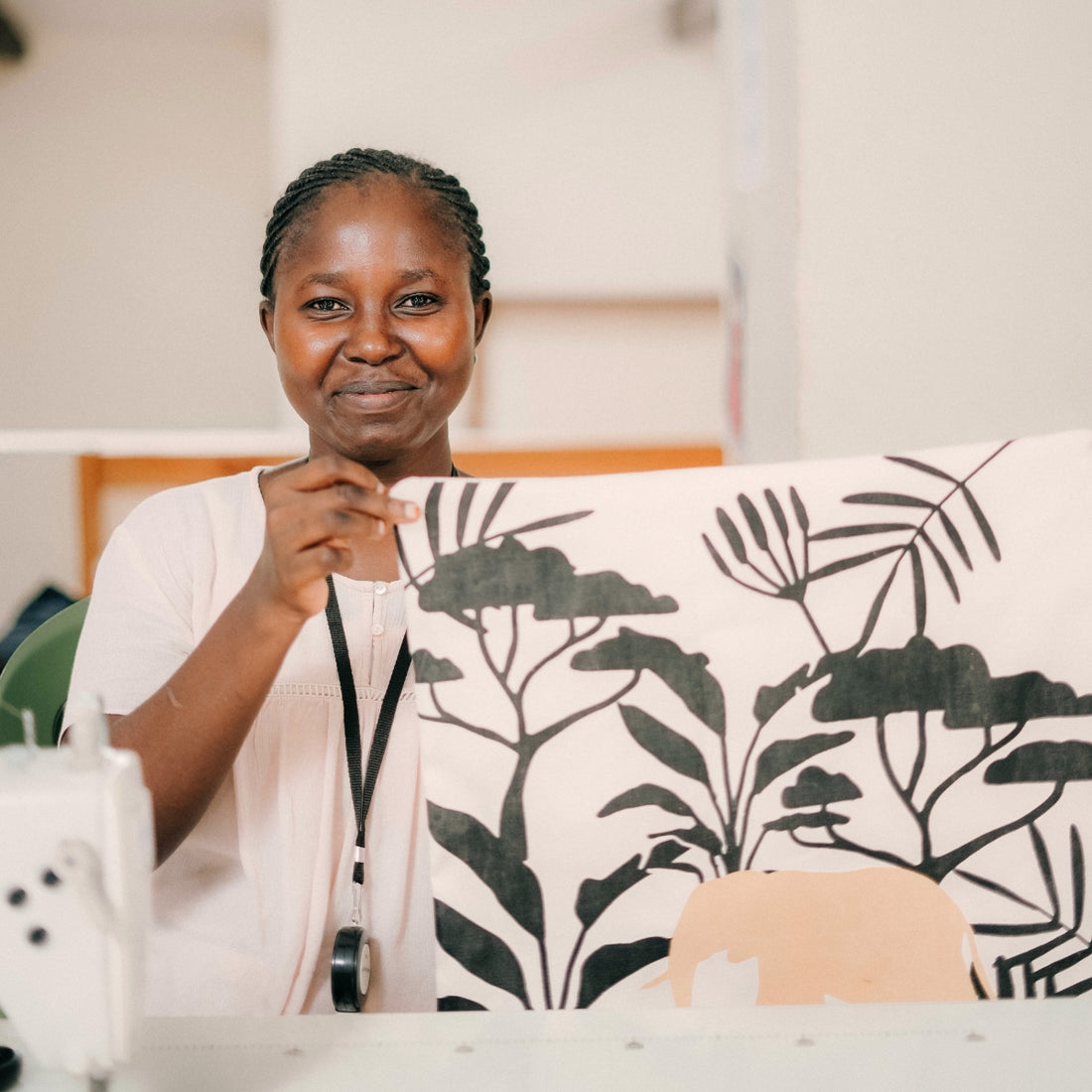 This canvas pillow cover is single sided with an easy zipper along one side for an 18" x 18" pillow insert. Made with soft canvas and screen printed by empowered artisans in Mombasa, Kenya in collaboration with Mara Elephant Project. 20% of proceeds from this product will be donated to the Mara Elephant Project's conservation efforts.