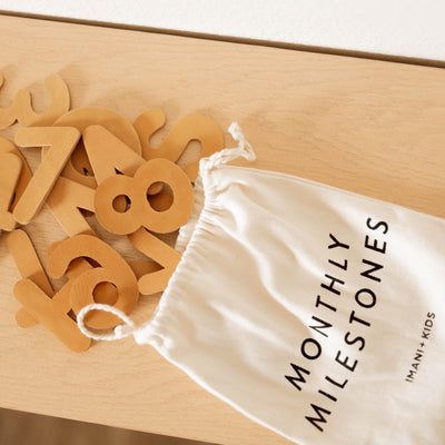 Introducing our monthly milestones. It comes with a combination of leather pieces made from scraps of leather cut out and a natural canvas drawstring. All sewn and screen printed by hand by empowered Kenyan artisans in Mombasa.
