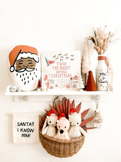 Santa Face Canvas Pillow available in two color ways. Sewn and screen printed by empowered artisans in Mombasa, Kenya. CHRISTMAS COLLECTION