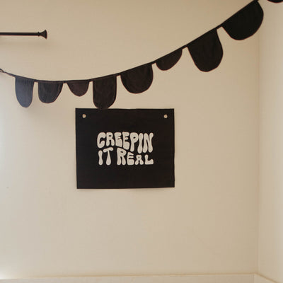 Scalloped canvas bunting perfect for birthdays + parties or for keeping up in your kids rooms or nurseries all year long! Made by empowered artisans in Mombasa, Kenya.