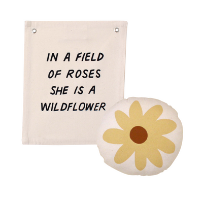 Discover the magic of nature with our Wildflower Whimsy Bundle. This bundle features the Wildflower banner and Daisy pillow, and is perfect for creating a nurturing and joyful space for your little one.