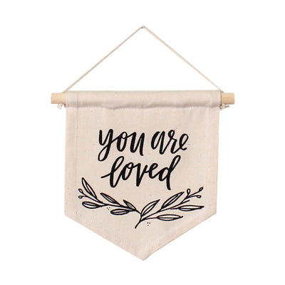 "You are loved" Sewn and screen printed by hand on natural canvas by Kenyan artisans.